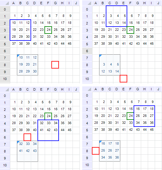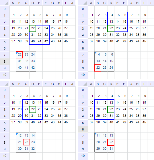 В качестве базовой ячейки можно определить любую ячейку на листе, находящуюся как в области формул, так и за ее пределами. Если базовая ячейка задана внутри области формул, то данная ячейка будет содержать исходную формулу.