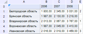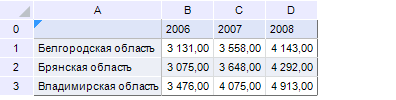 диапазон области данных: B1:D3;
