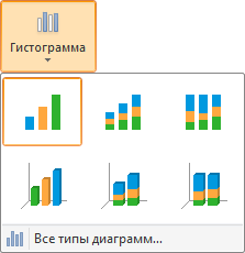 Выберите тип диаграммы с помощью кнопки «Гистограмма», расположенной в группе «Диаграммы» на вкладке «Вставка» ленты инструментов: