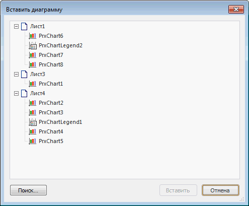 Из списка объектов выберите источник для формирования диаграммы или легенды на текстовом листе.