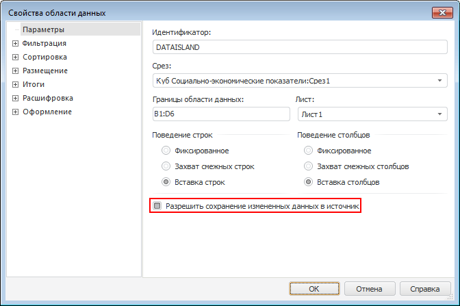 Необходимо настроить защиту данных от редактирования и последующее сохранение измененных данных отчета в источник.
