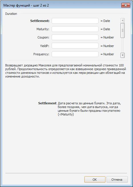 Мастер функций для функции «Duration» выглядит следующим образом:
