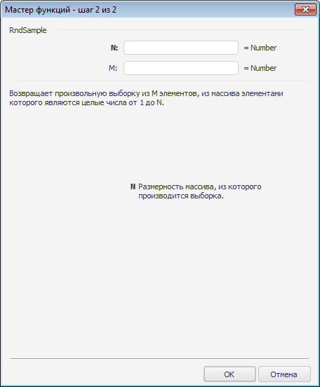 Мастер функций для функции «RndSample» выглядит следующим образом: