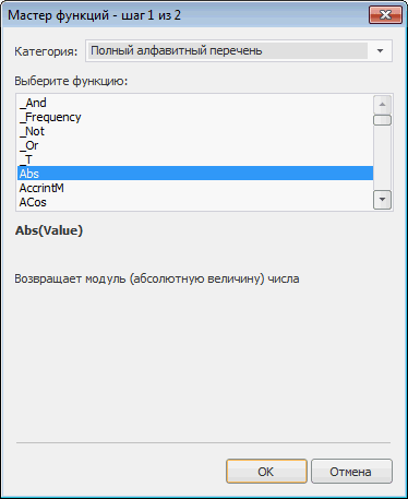 После выполнения одного из действий будет открыто окно «Мастер функций»: