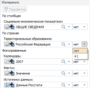 Фиксированные. Содержит список зафиксированных измерений, которые не отображаются в таблице.