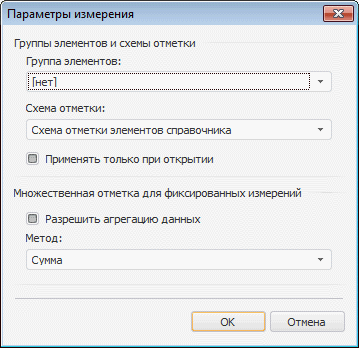 Так же при работе с измерениями доступны настройка агрегации в фиксированных измерениях и работа со списком в измерении.