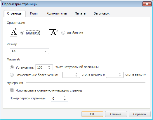 выполните команду главного меню «Отчет > Печать > Параметры страницы»;