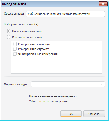 Примечание. Если атрибут Format не указан, то будет выведено только значение отметки (Value).