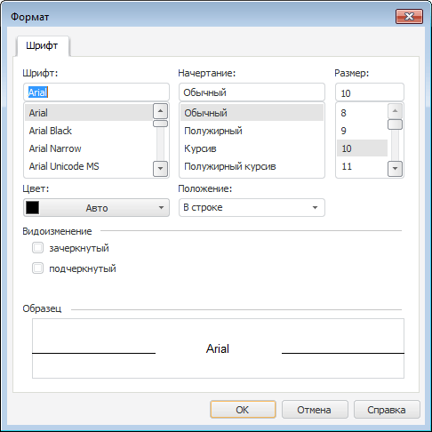 На вкладке «Шрифт» возможна установка следующих параметров: