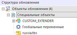 После добавления специальных объектов в области «Структура обновления» появится папка со специальными объектами: