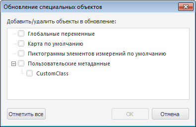 После выполнения одного из действий будет открыт диалог «Обновление специальных объектов»: