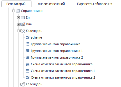 На панели «Обновление» схемы отметки отображаются как дочерние элементы справочника.