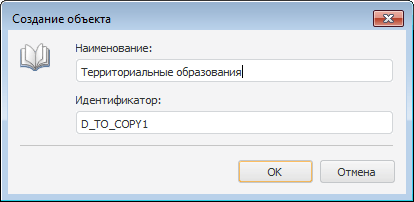 Создать копию объекта. Команда позволяет создать в репозитории копию объекта, а не обновлять исходный объект. При выполнении данной команды откроется диалог задания наименования и идентификатора объекта: