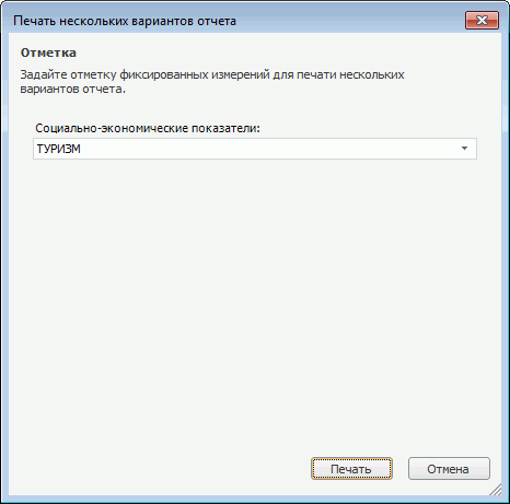 В диалоге отображаются все фиксированные измерения, для которых созданы элементы управления, общие для всех листов отчета. Задайте требуемую отметку и нажмите кнопку «Печать».