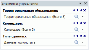 Управление данными, отображаемыми объектами отчета, выполняется с помощью элементов управления.