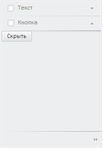 На вкладках расположены заголовки панелей, которые задаются свойством NavigationItem.Title, элементы управления (по умолчанию - экземпляры класса CheckBox) и стрелки, направленные вниз, если панель закрыта, и вверх, если панель открыта.