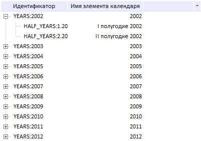 После выполнения примера при нажатии на кнопку будут отображены столбцы с атрибутами измерения. Выберите пункт контекстного меню компонента DimensionTree «Наименование уровней». Снимите флаг «По умолчанию». Наименованием измерения (данные в первом столбце) будет атрибут с идентификатором «ID»:
