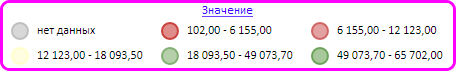 В результате выполнения примера будут установлена розовая граница у легенды пузырьковой диаграммы экспресс-отчета с толщиной в 3 пиксела, подписи легенды будут расположены в 3 столбца: