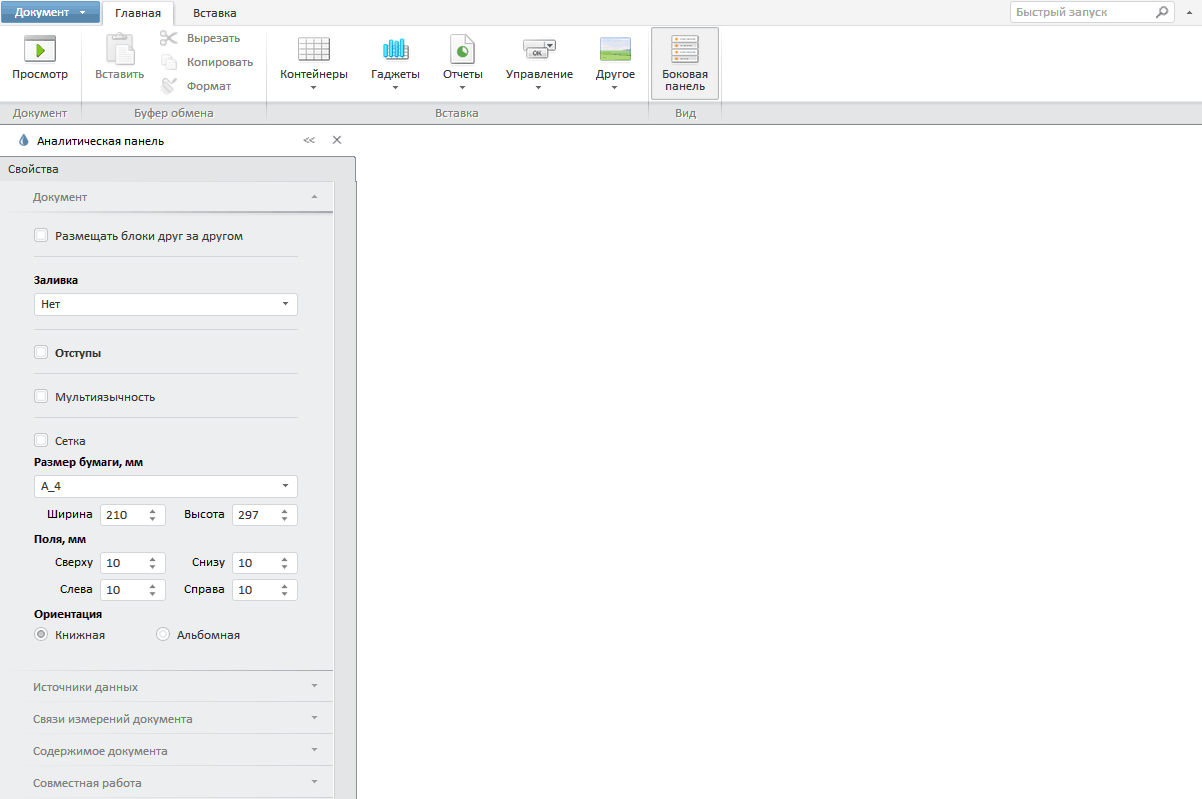 После выполнения примера на странице будет размещен конструктор аналитических панелей: