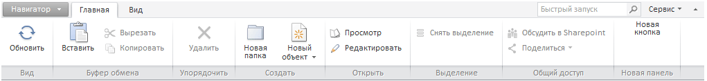 Компонент NavigatorRibbon представляет собой ленту инструментов навигатора объектов.