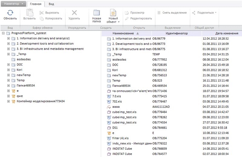 Компонент Navigator представляет собой навигатор объектов репозитория Prognoz Platform 8.