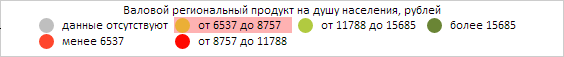 В результате выполнения примера были изменены следующие свойства легенды: формат записи интервалов с левой, правой и обеими границами, расположение и текст элемента, соответствующего отсутствующим данным в визуализаторе, цвет и прозрачность кисти подсветки элементов легенды, цвет подсвеченных элементов, был установлен режим отображения подсветки по клику и разрешена подсветка элементов легенды: