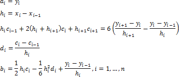 ai, bi, ci, di - коэффициенты сплайна, подлежащие определению на всех n элементарных отрезках: