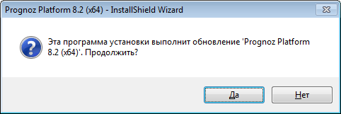 если для обновления запущен дистрибутив более поздней сборки Prognoz Platform 8 (например, 8.2.11) и с тем же названием, что и был использован для установки, то появится диалог подтверждения: