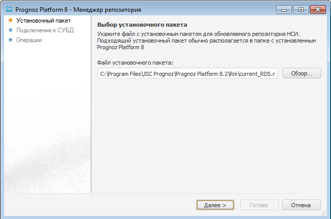 Автоматически будет выбран путь к файлу с расширением *.rm4, в котором хранятся исполняемые скрипты. Данный файл входит в стандартный установочный пакет и находится по пути «S\Rm\current_RDS.rm4», где S - путь до места установки Prognoz Platform 8.
