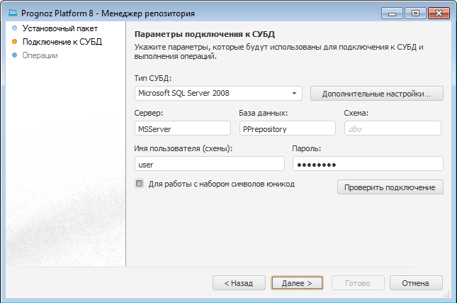 Примечание. Набор доступных настроек зависит от выбранной СУБД.