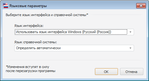 Пример окна «Языковые параметры» с измененной пиктограммой: