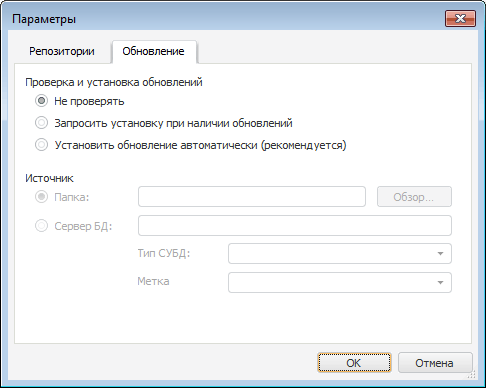 вкладки «Обновление» в диалоге «Параметры». Для вызова диалога выполните команду «Сервис > Параметры» в главном меню: