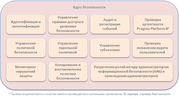 Ядро безопасности программы остается нетронутым при обновлении/доработке компонентов Prognoz Platform 8;