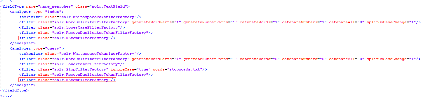 class="solr.KStemFilterFactory"/>:
