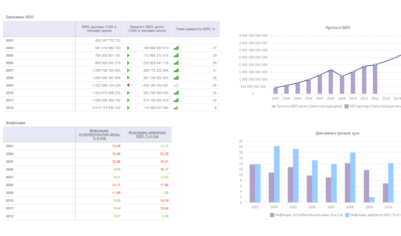 Данный пример отчета иллюстрирует сразу несколько экономических показателей для отдельно взятой страны.
