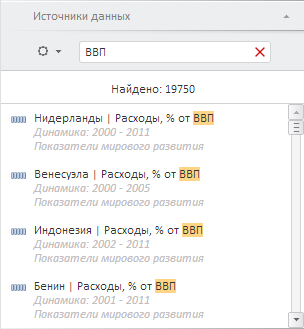 Введите в строку поиска наименование или часть наименования искомого источника данных.