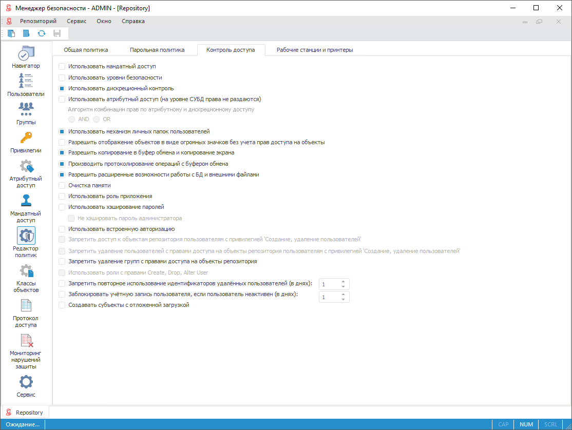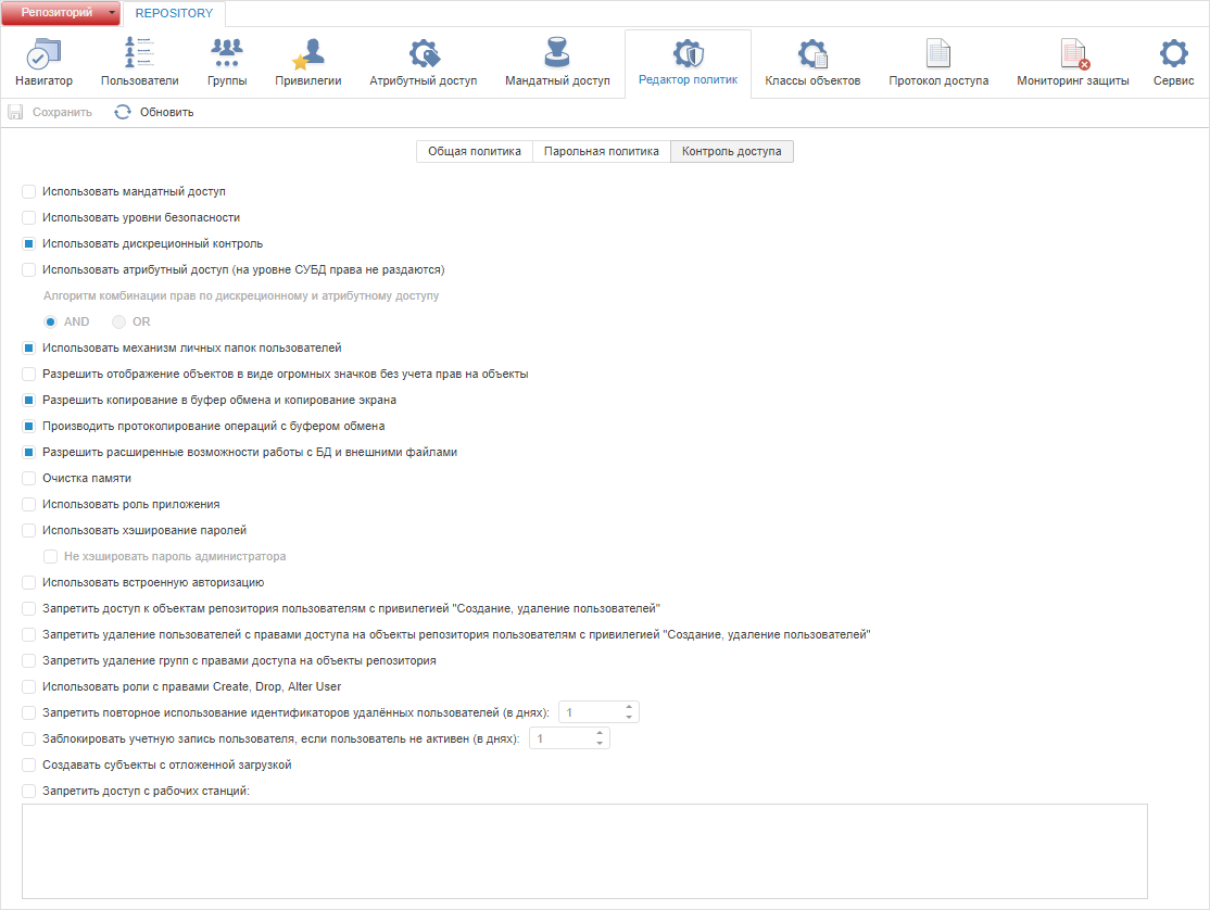 выполните команду «Репозиторий > Применить политику безопасности» в главном меню;