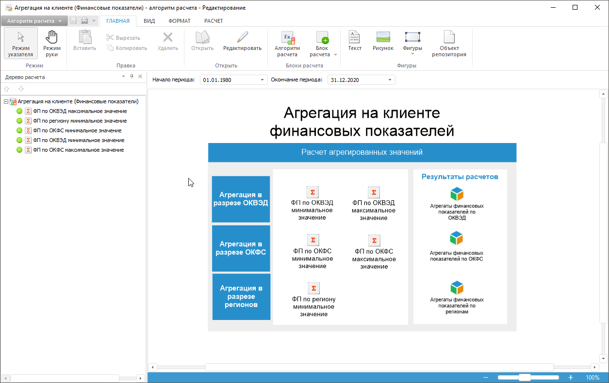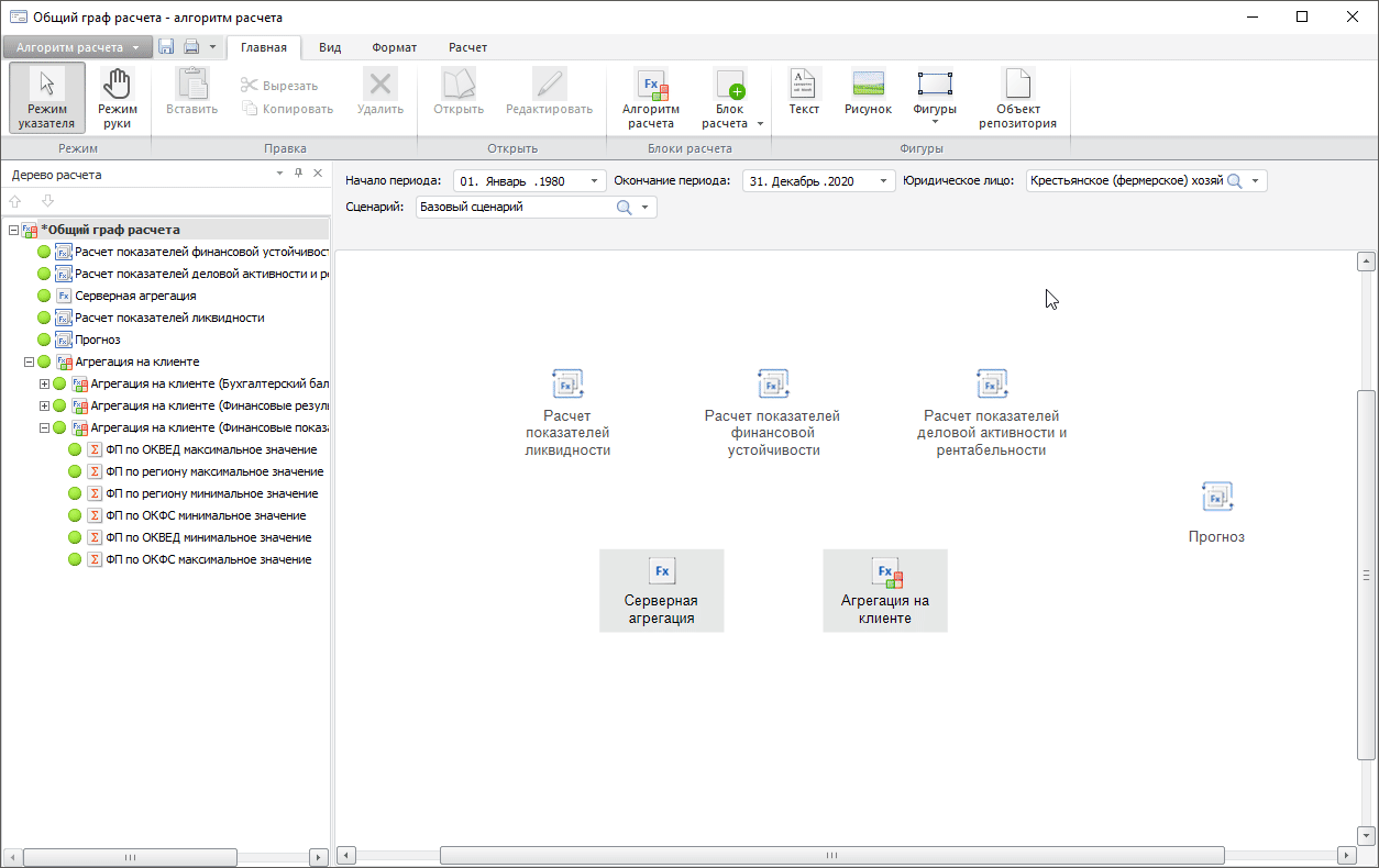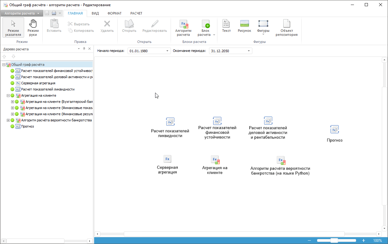 Построение алгоритма расчёта выполняется в настольном приложении.