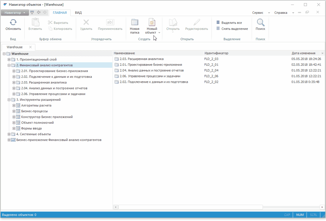 Добавление новых объектов в приложение возможно также при помощи мастеров создания объектов «Форсайт. Аналитическая платформа».