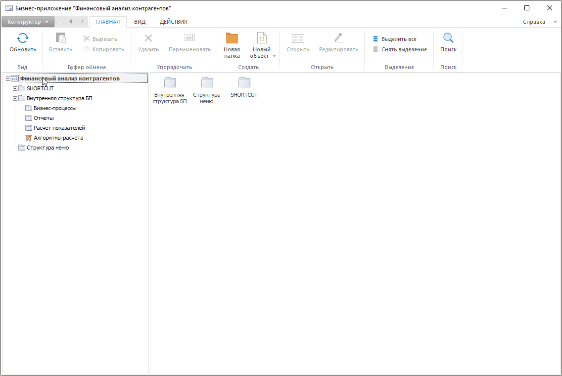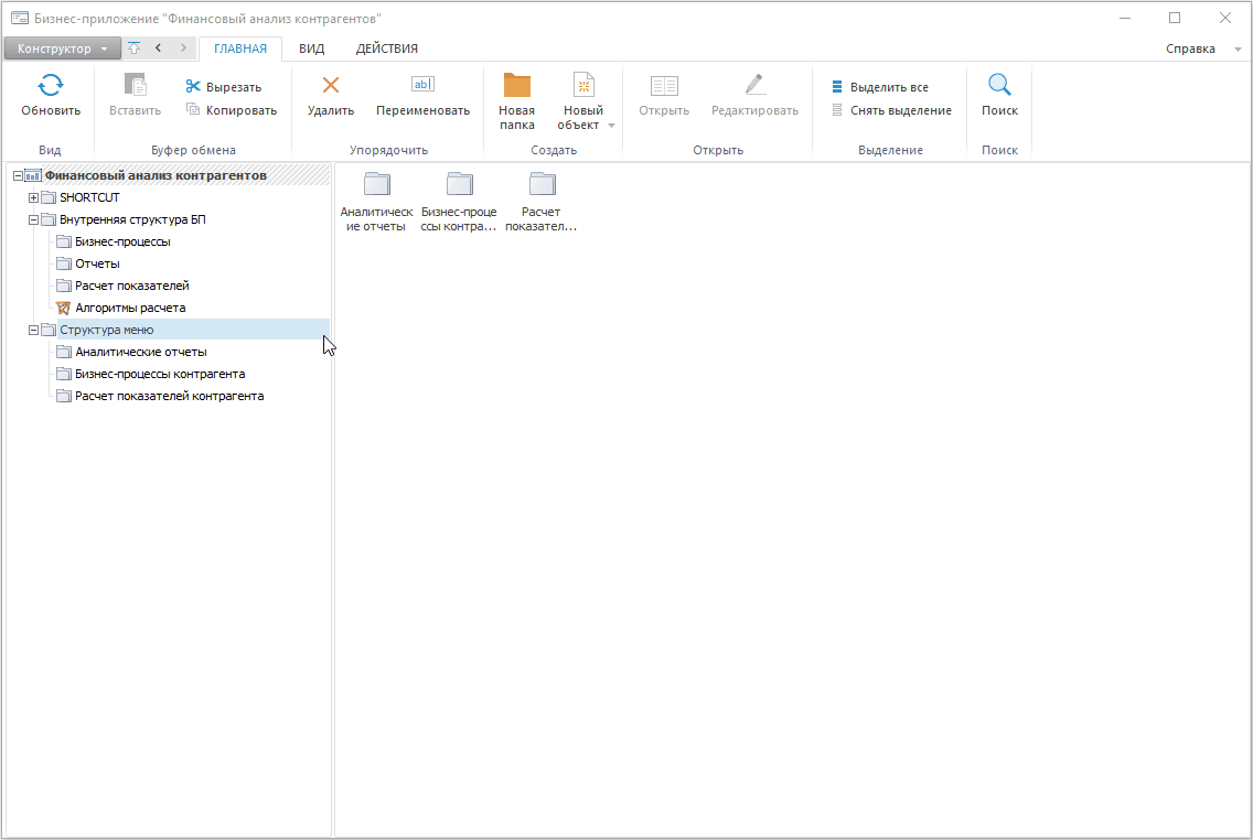 1. Создайте внутреннюю структуру для размещения объектов приложения в папке «Внутренняя структура БП»: