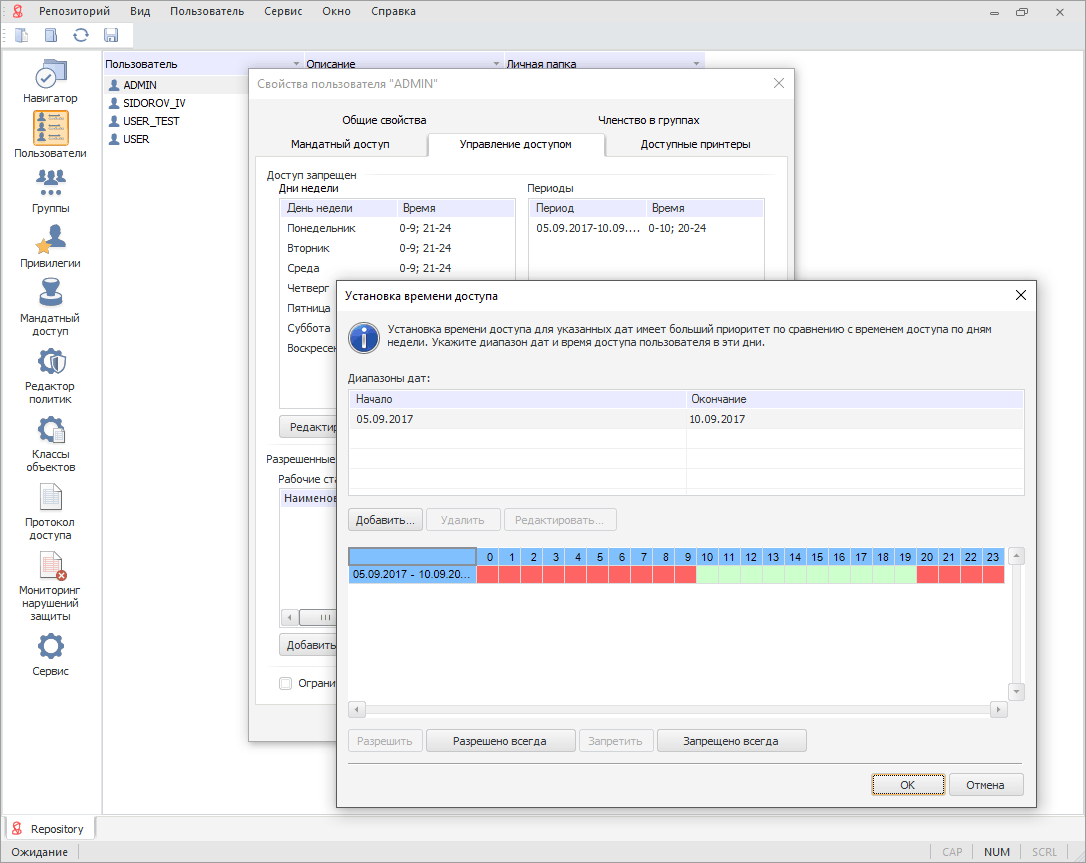 Инструмент «Менеджер безопасности» предназначен для администрирования и контроля доступа.