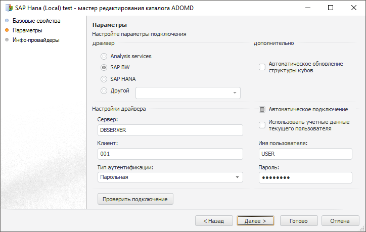 подключение к многомерным базам данных, построенных на базе Microsoft Analysis Services, SAP NetWeaver BW и других платформах;