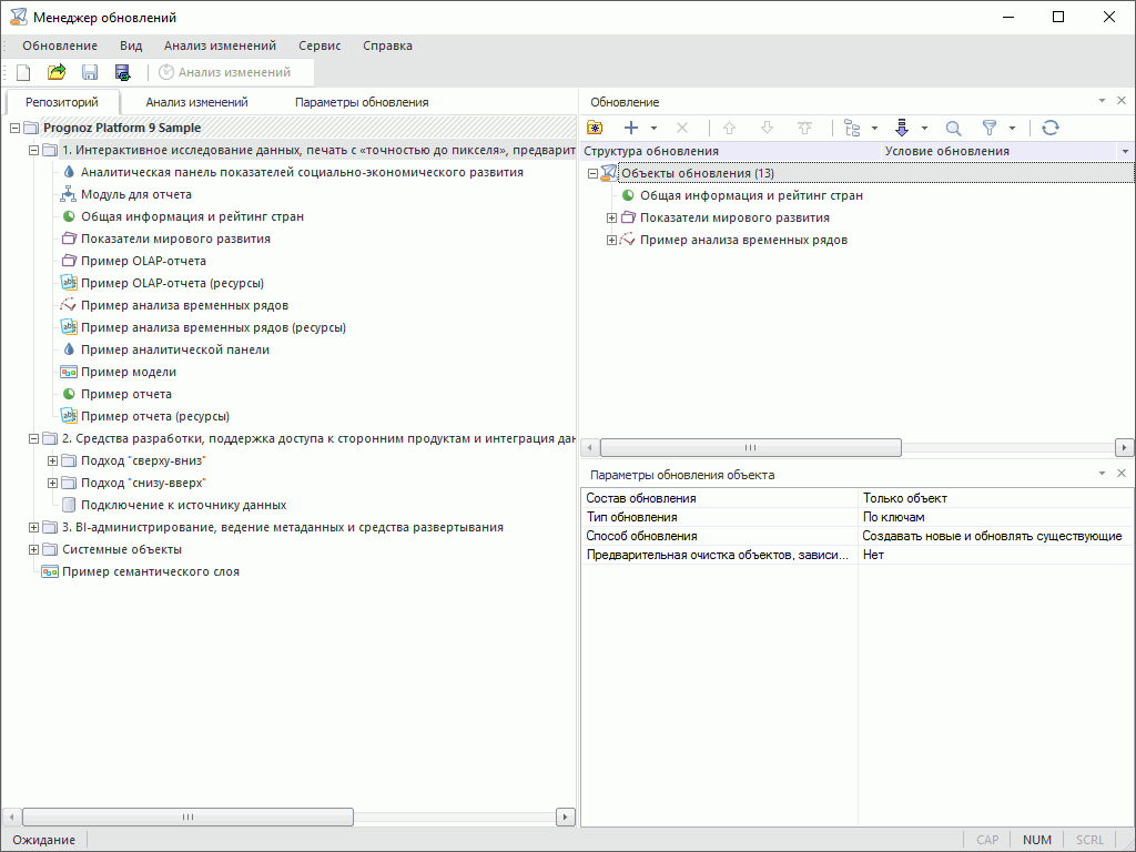 Инструмент «Менеджер обновлений» предназначен для синхронизации объектов между репозиториями и их обновления.