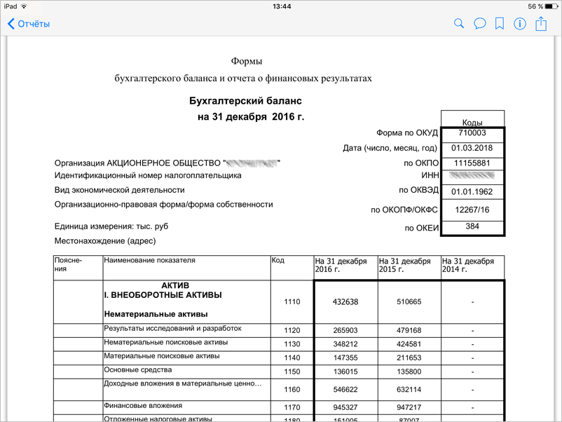 Инструмент «Отчёты» в мобильном приложении позволяет просматривать отчёты для печати, созданные в настольном приложении.