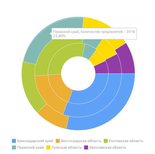 Примечание. Визуализаторы данных доступны в инструментах: «Аналитические запросы (OLAP)», «Аналитические панели». В аналитической панели визуализаторы могут использовать данные из нескольких источников.