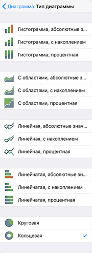 Таблица | Диаграмма | Карта | Пузырьковая диаграмма | Пузырьковое дерево | Плоское дерево | Настройка визуализаторов