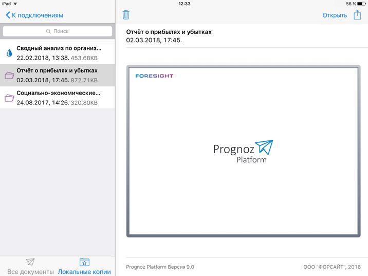 отчёты в формате *.ppmobile при открытии будут сохранены в папку «Локальные копии». Если отчёты открываются повторно, то их локальная копия будет обновлена.