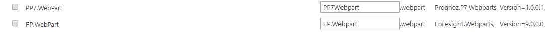 Выберите из списка веб-часть Foresight.Webparts.fpReportWebprt.fpWebpart и нажмите кнопку «Заполнить галерею».