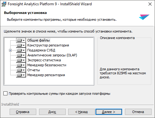 Флажок «Проверять контрольные суммы при каждом запуске платформы» определяет, будет ли проводиться проверка целостности продукта «Форсайт. Аналитическая платформа». При установленном флажке при каждом запуске «Форсайт. Аналитическая платформа» будет проверяться целостность исполняемых файлов и соответствие их содержимого эталону. По умолчанию флажок снят и проверка целостности продукта «Форсайт. Аналитическая платформа» не производится. Значение опции применяется только для устанавливаемого релиза.