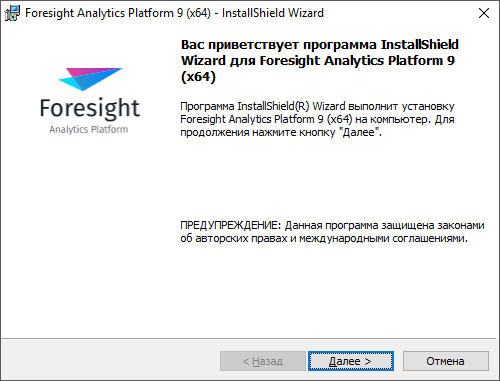 если на рабочей станции установлена более ранняя сборка, то будет предложено обновление «Форсайт. Аналитическая платформа»;